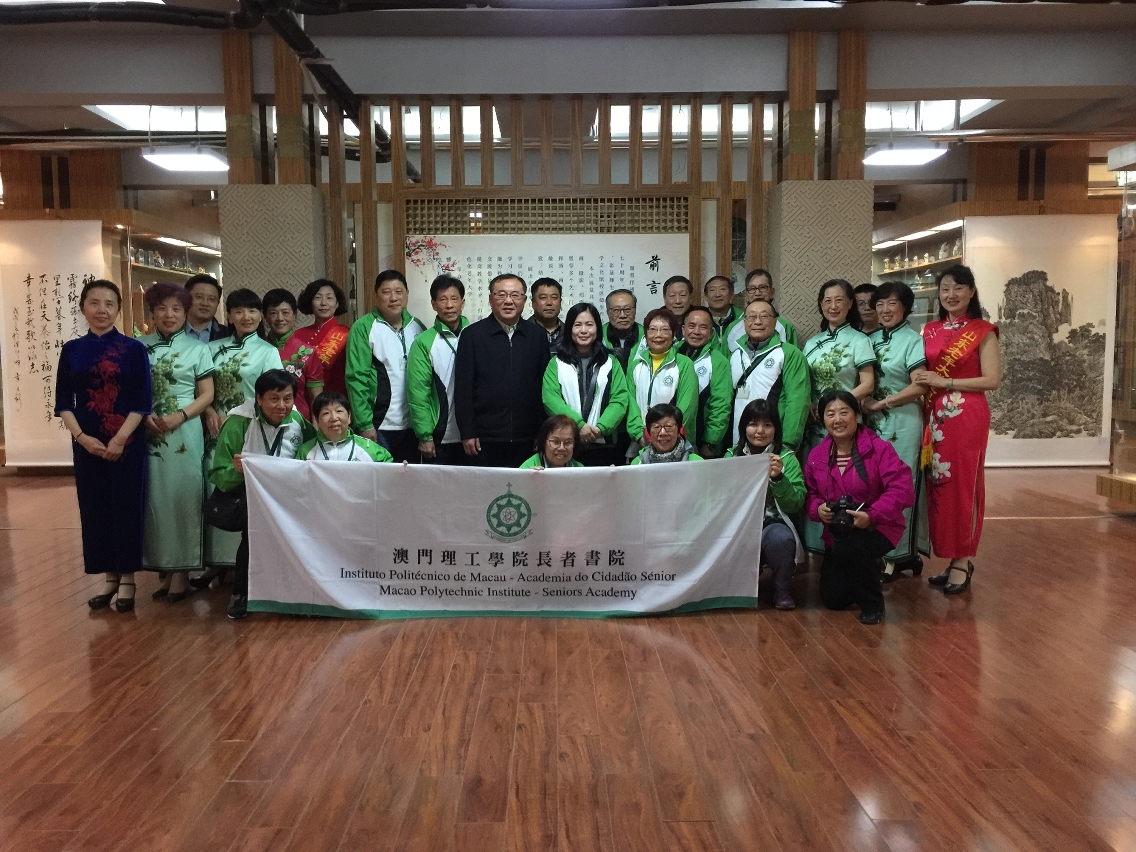 在大觀園校區和頤心苑校區,長者書院一行參觀了各類教室及遠程教育錄播室設施;在文化館校區,在導師及學員的介紹下,欣賞了刻瓷、蛋雕及結藝等非遺課室的師生作品,並觀摩了京劇、朗誦、電子琴等課堂教學。在座談會上,任德強從創校、多元辦學、規範辦學、示範引領等層面詳細介紹了山東老年大學辦學情況,回顧了作為中國第一所老年大學的辦學歷程。林韻薇介紹了澳門理工學院長者書院的創辦背景、辦學特色、招生情況等,並介紹了澳門特別行政區政府重視澳門長者人口老齡化趨勢,設有長者事務十年行動計劃,從住屋、交通、醫療及教育等全方位關顧長者的需要。長者書院學生會會長劉筱多介紹了會務及學習情況。
