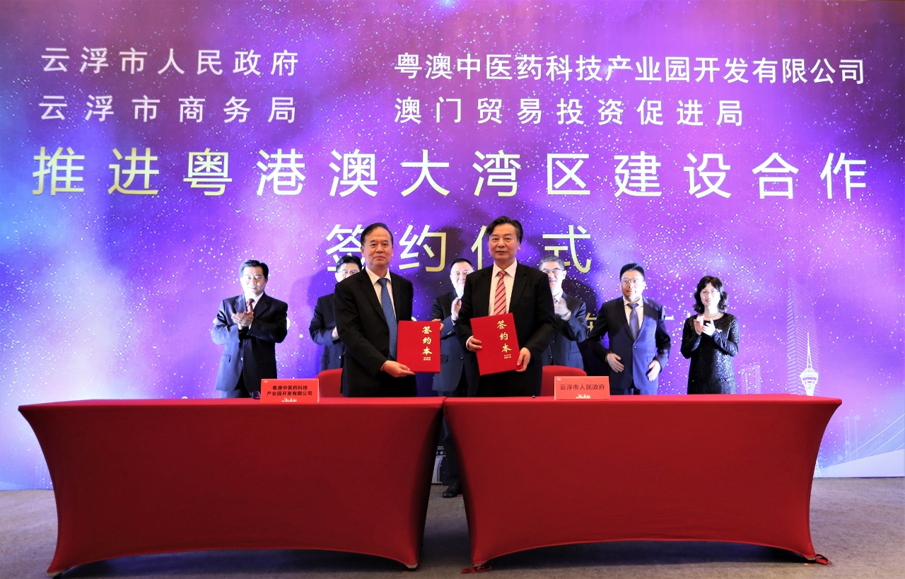 雲浮市人民政府與粵澳合作中醫藥科技產業園(下稱:產業園)今(9)日在廣州簽訂戰略合作協議,雙方將充分利用雲浮市的資源條件和產業園的優勢平台,加强在中醫藥、大健康產業領域的交流與合作。