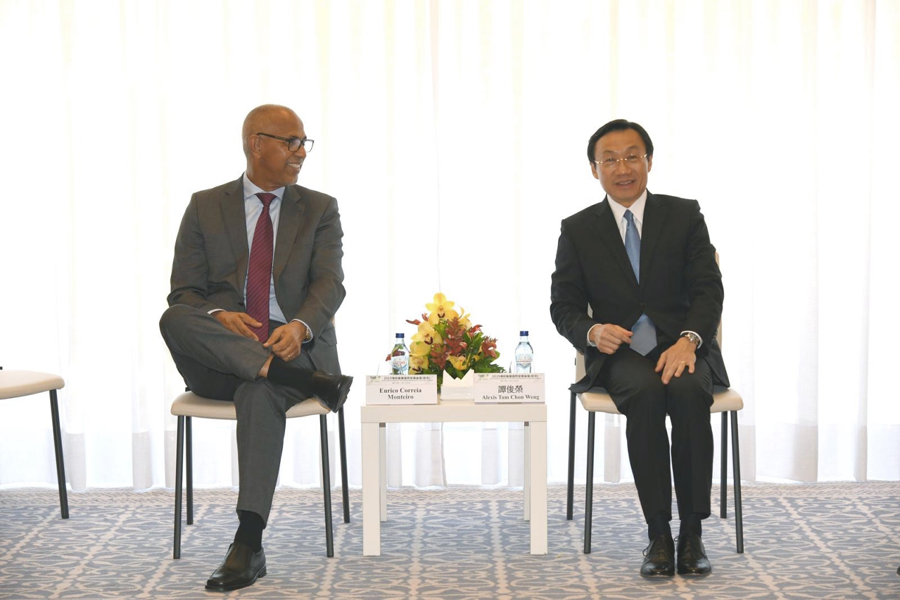 5月15日舉行傳統醫藥國際發展論壇(歐非)期間,社會文化司司長譚俊榮於里斯本會見佛得角衛生與社會保障部部長代表、佛得角駐葡萄牙大使歐里科 ·科雷亞 · 蒙泰羅 (Eurico Correia Monteiro)。