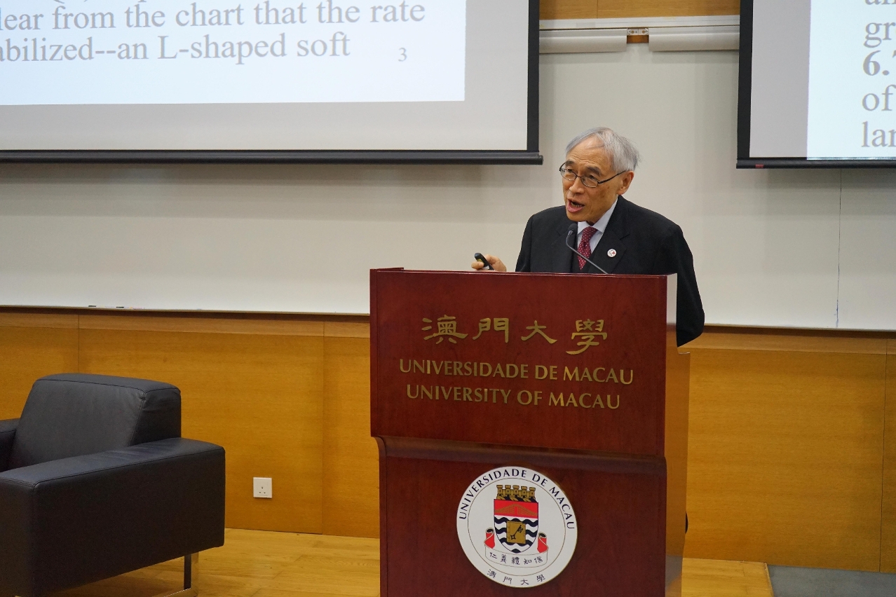澳大校長宋永華致辭時表示,劉遵義教授是這次講座的最佳人選,追溯至1979年,當中國剛開始實行經濟改革並對外開放,他以美國經濟學會代表團成員的身份參訪中國,該代表團與中國當時的經濟決策者們進行了交流,之後他便不斷為中國最高層的經濟決策者們提供意見。劉遵義專研經濟發展和經濟增長,以及包括中國在內的東亞經濟。最早的中國經濟計量模型由他於1966年建立,自此他更不斷將之加以改良。
