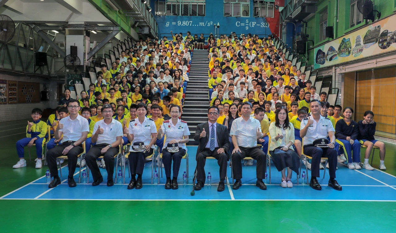 海關自2017年2月開展「保護知識產權校園宣傳計劃」以來,持續到本澳各間學校進行巡迴宣傳及舉辦講座,至今已向本澳近四十間中學,約2萬8千名學生進行推廣。是次講座共350名學生及教職員參與,出席的嘉賓還包括菜農子弟學校校長王國英、副校長譚錫添、副校長侯錫球、副校長江欽育等。