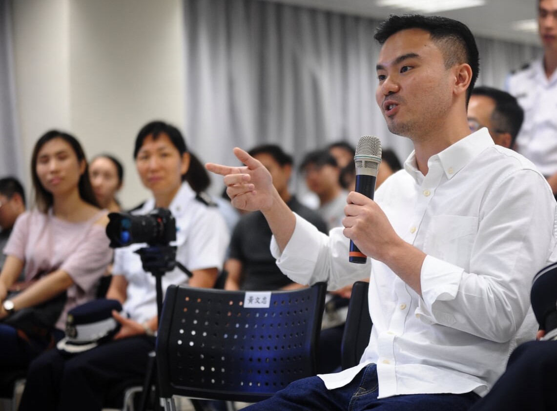 黃文忠稱,社會不斷發展,大型口岸相繼落成,海關亦需與時並進。因此在海域管理及關務工作上,持續引入新型的設備和系統,以強化執法能力。未來為持續做好相關工作,海關貫徹落實“科技強警”的施政方針,大力建設智慧海關。黃文忠指出,海關除了現時正在構建的海域智能監控系統及風險管理系統外,短期內亦會引入太赫茲人體成像安檢系統和面容識別系統。在答問環節中,現場青年分別就「合作查驗,一次放行」的創新通關模式、堵截海上非法入境者及偵緝走私等問題踴躍發問,黃文忠認真聆聽並作出解答。