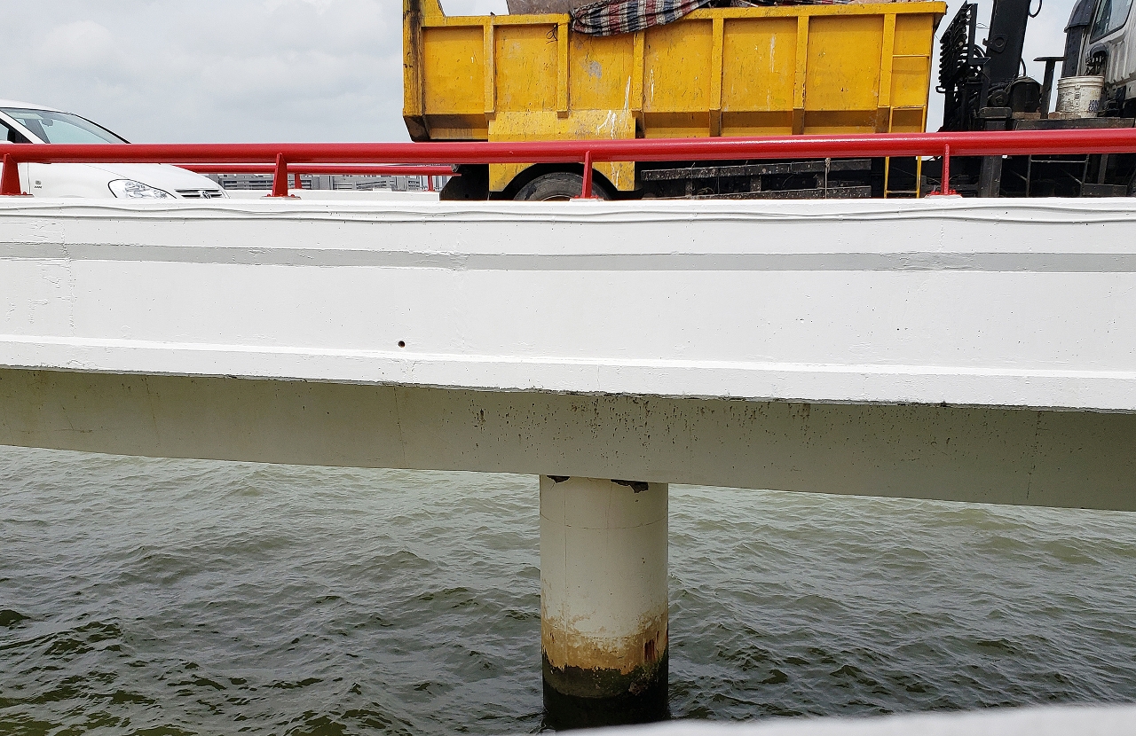 友誼大橋橋墩支座的混凝土保護層脫落。