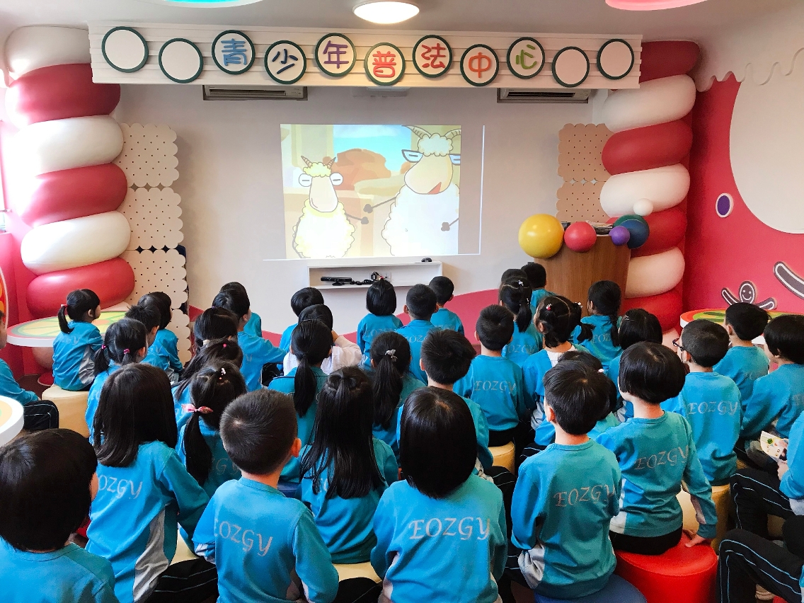 為讓學生從小認識國家憲法、澳門基本法及其他法律法規,法務局於二零一八/二零一九學年為本澳十九間學校舉辦了二百三十場小學普法活動,參加的學生超過八千人。