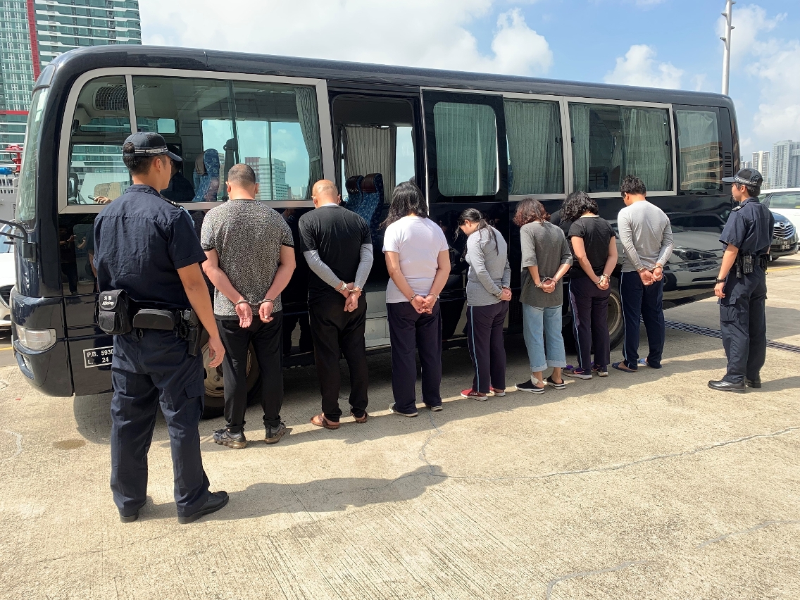 涉案的7名人士均來自內地,6名非法入境者分別為2男4女,年齡介乎34歲至50歲,全數已移交治安警察局處理;而案中31歲駕船男子,海關以涉嫌觸犯第6/2004號法律第十四條「協助」罪,將其移送檢察院偵辦。