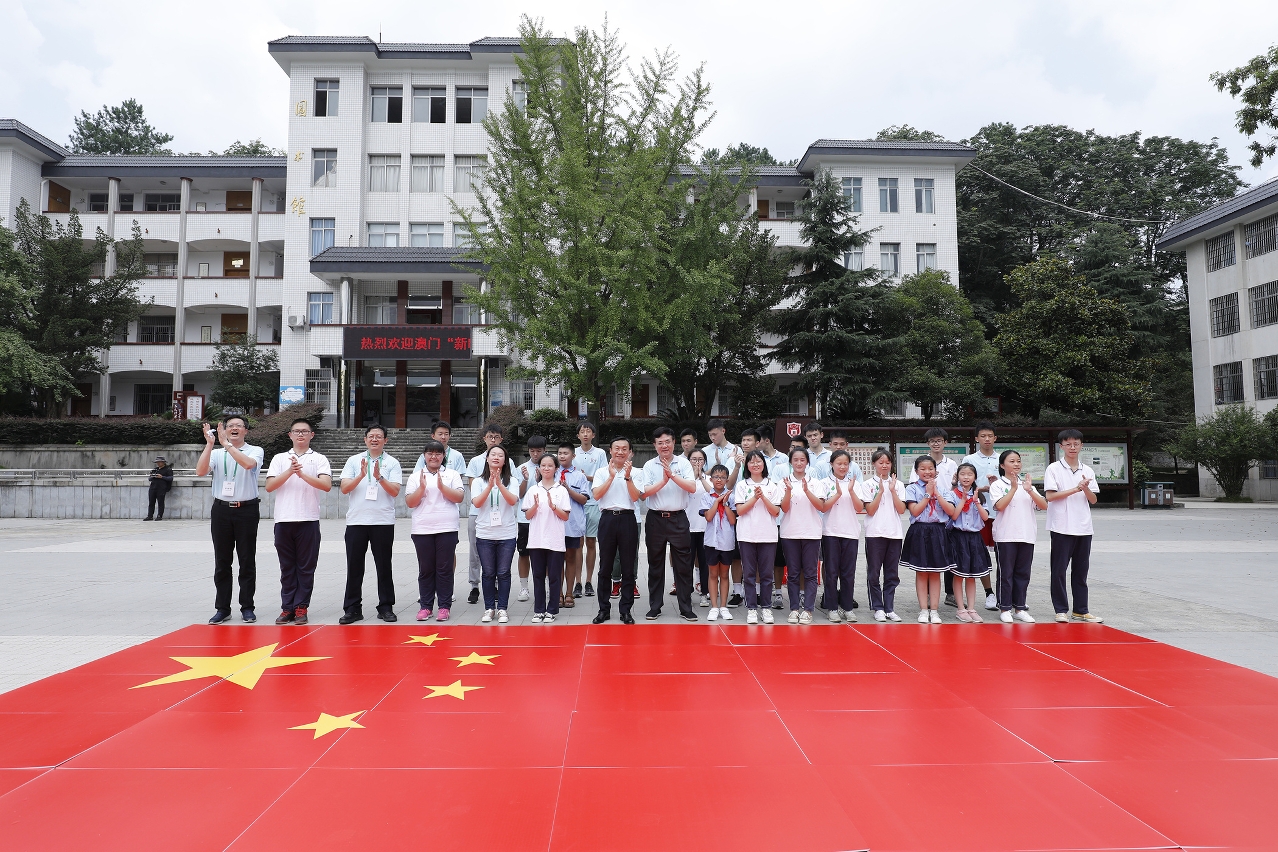另外, 50名澳門中學生在社會文化司司長譚俊榮、中聯辦副主任薛曉峰帶領下,在韶山學校與當地學生交流。兩地學生各自帶着小禮物在韶山學校操場展開了交流。譚俊榮與當地學生親切交談,詢問了學生的學習和生活情況。
