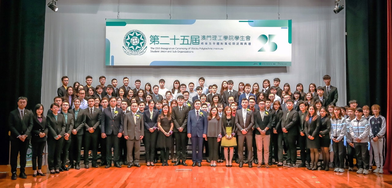 “第二十五屆澳門理工學院學生會總會及全體附屬組織就職典禮”日前在澳門理工學院禮堂隆重舉行。新一屆澳門理工學院學生會總會與附屬組織全體成員在中央人民政府駐澳門聯絡辦公室教育與青年工作部副處長岑嘉儀、高等教育局高等院校學生廳廳長陳旭偉等眾多嘉賓,及澳門理工學院院長嚴肇基見證下宣誓就職。