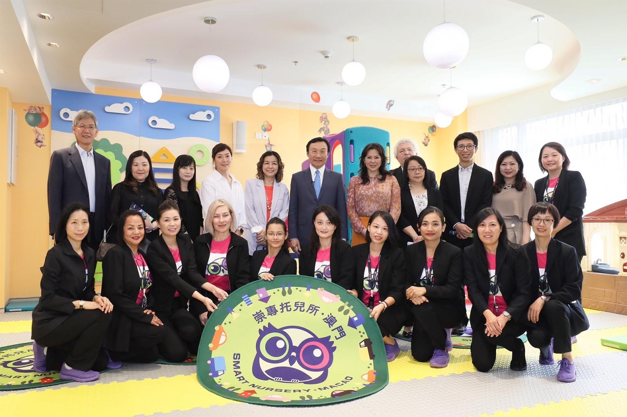 隨後,譚俊榮一行視察同位於日昇樓的崇專托兒所,參觀托兒所的活動室、幼兒單車徑、廚房、多用途室、圖書閣等,譚俊榮詳細了解托兒所的服務宗旨、服務特色、收托安排及人力資源情況,讚揚該所引入智能科技,方便家長和所方溝通;提供中、英、葡三語的培育安排,以及透過探索設備及環境引發兒童學習的動機等。該所本年9月16日起已投入服務。
