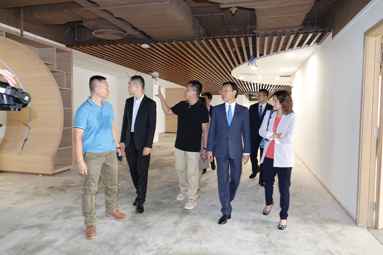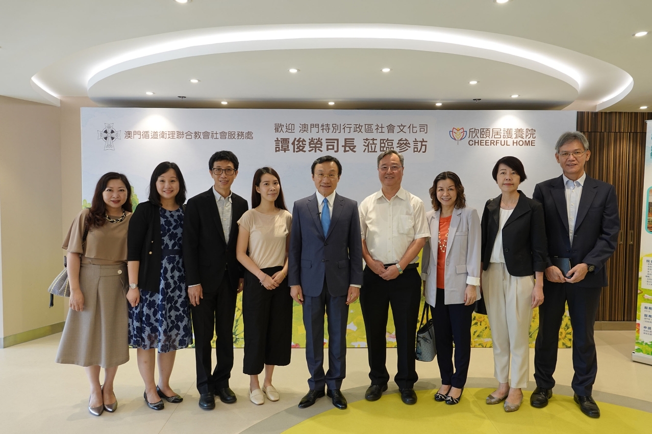 譚俊榮一行首先視察即將於本年第四季投入服務欣頤居護養院,該院位於氹仔東北大馬路社屋日昇樓,由社會工作局資助,澳門循道衛理聯合教會社會服務處負責運作,投入使用後可提供144個服務名額,令本澳安老院舍宿位增至約2400個。