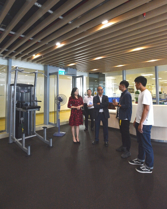 蘇局長一行在澳門理工學院學生會林志超理事長兼會員大會會長、馮家俊監委會主席的陪同下,參觀學生會辦公室和校內健身活動中心,瞭解學生會的日常運作情況,以及學生的課餘生活。