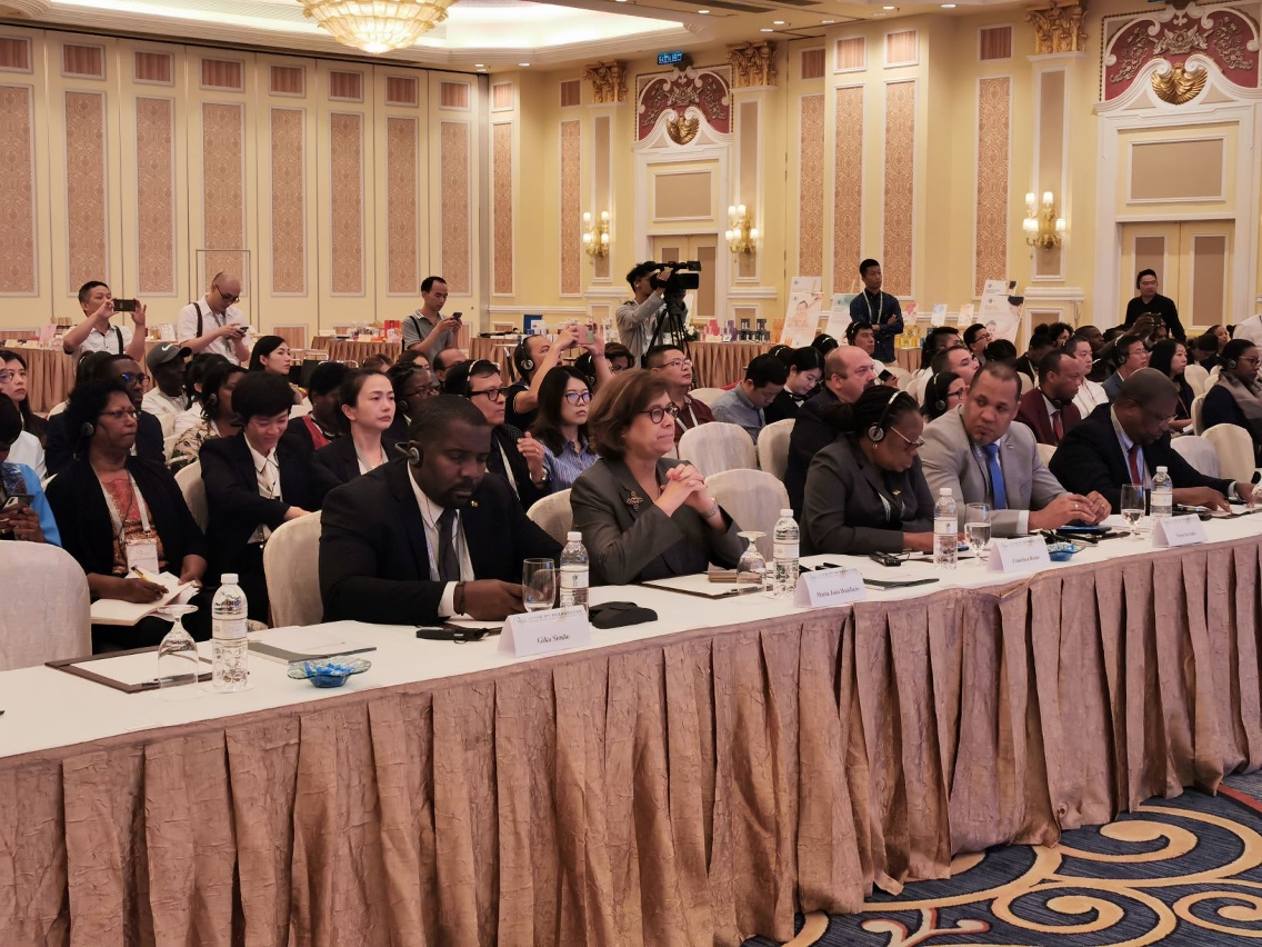 26日, “商貿對接會暨葡語國家傳統醫藥經貿合作研討會”在上述論壇期間舉行。 佛得角衛生部部長Arlindo Nascimento do Rosário、聖多美和普林西比衛生部部長Edgar Neves、安哥拉衛生部公共衛生國務秘書 José Manuel Vieira Dias da Cunha、中葡論壇常設秘書處秘書長徐迎真、粵澳中醫藥科技産業園董事長呂紅等出席。會上, 徐迎真秘書長致辭表示, 中醫藥産業是澳門發展規劃的重點方向, 而澳門又是中國葡語國家商貿合作服務平台, 這爲傳統醫藥的市場推廣和産業合作提供了有利條件, 期待傳統醫藥合作成爲推動各國文明交流互鑒的重要載體。呂紅董事長強調, 產業園作為澳門發展中醫藥產業的重要載體和平台, 立足粵港澳大灣區及“一帶一路”的重要支點, 在澳門特區政府施政指引下, 持續發揮與葡語系國家的天然紐帶優勢,為發展澳門多元化經濟助力。
