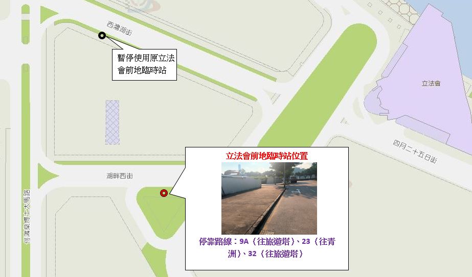 立法會前地臨時站周二起臨時遷移至湖畔西街