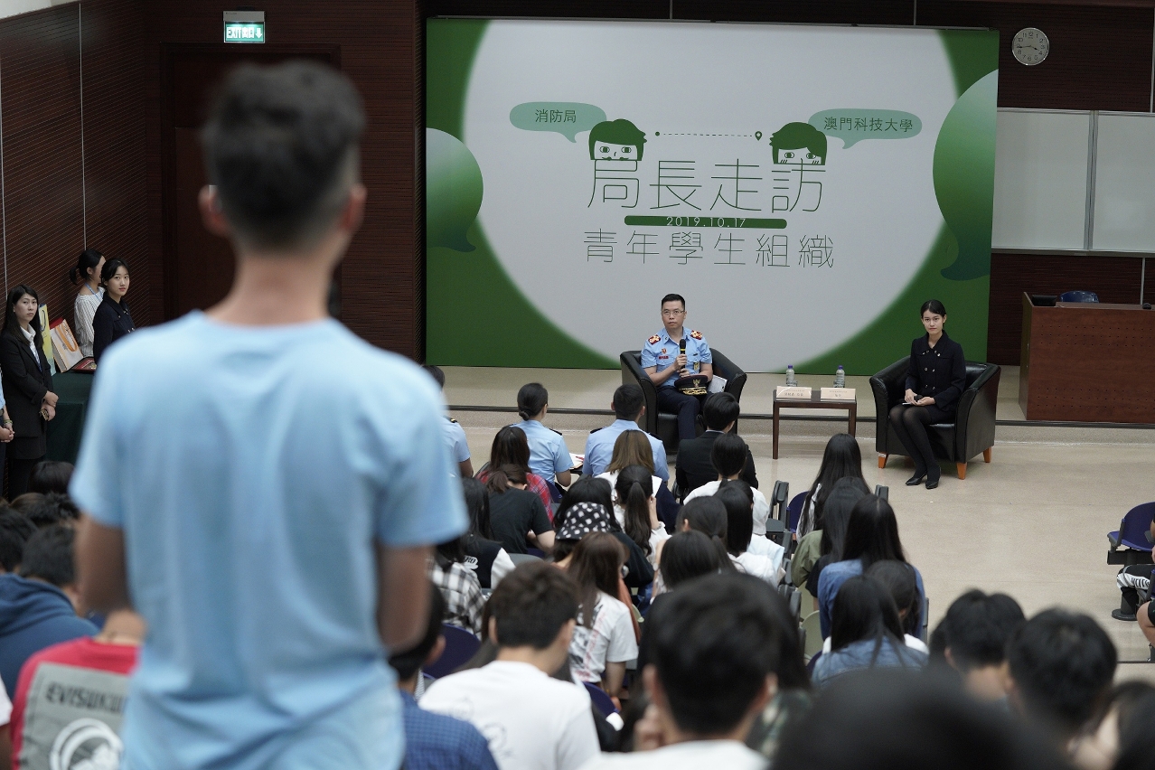 青年人作為社會未來的棟樑,特區政府一直十分重視他們的聲音及意見。消防局為促進與本澳青年朋友的溝通和交流,局長梁毓森於10月17日到訪澳門科技大學,與約160名學生進行“青年與局長真情對話”,以「聆聽青年創新思維,共同維繫消防安全」為主題互動交流,冀透過與青年人面對面接觸,聆聽他們對消防工作的想法、期望,以及汲取他們對維繫澳門社區的消防安全的意見和建議。