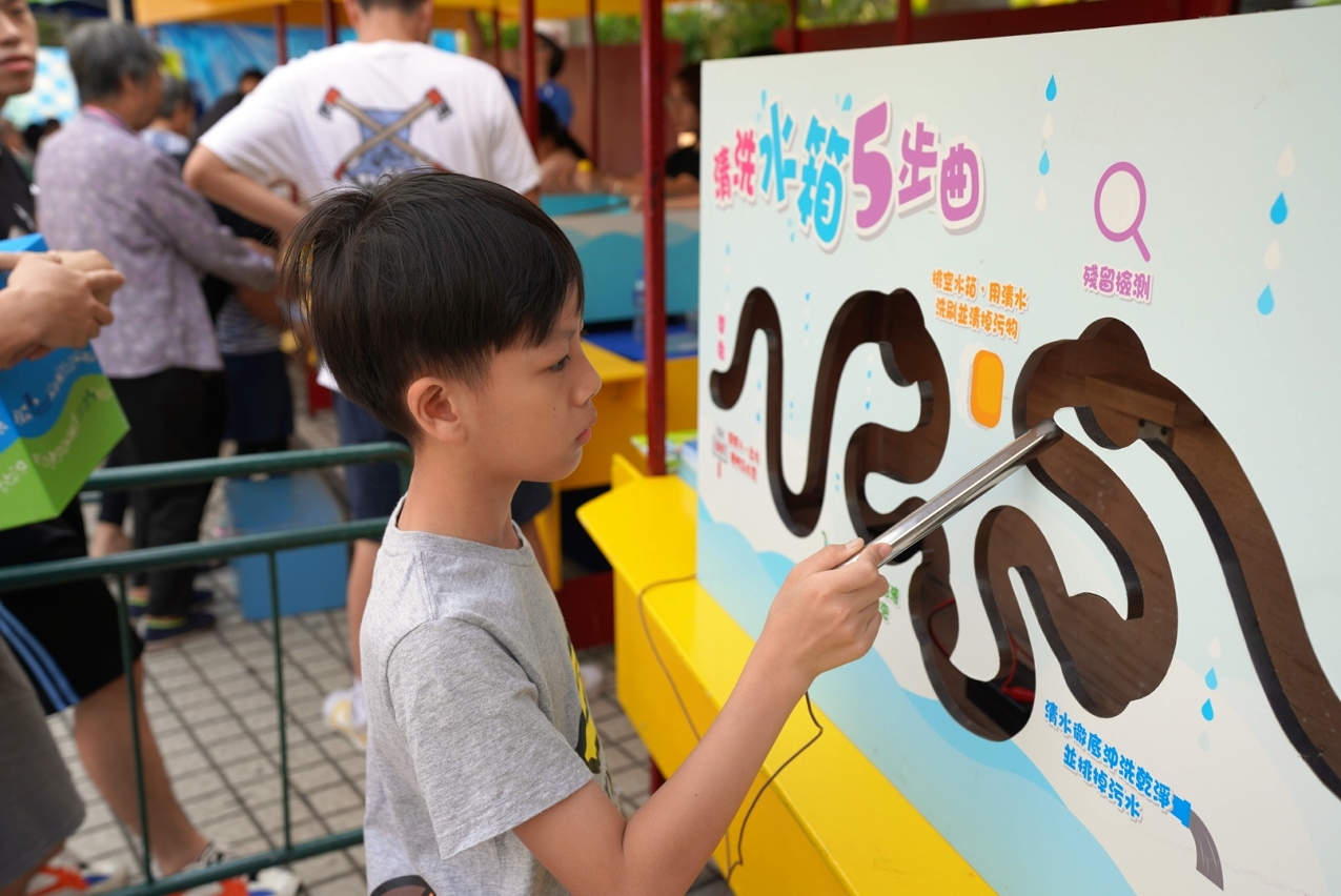 “海安全‧水優質”社區巡禮現場設有多個以航行安全、海事及客運知識、節約用水、認識鹹潮、維護管理樓宇自來水系統等為主題的攤位遊戲,更設有繩結工作坊,由專人教授編織海事繩結,透過有趣互動的方式,讓市民深入淺出地認識澳門水資源和海事狀況,以及保育珍貴水資源和注意海上安全的重要性。小朋友亦可透過穿越“小水滴遊記”的大型充氣關卡,了解澳門的水資源從內地的河道經泵站抽水、輸往水庫儲存、再輸入澳門並經水處理後供應至用戶,可見珍貴的水資源歷經聚多步驟才能到達各家各戶。活動期間亦上演了一場精彩的《威水超人》節水話劇,深受小朋友喜愛的“威水超人”和“水汪汪姐姐” 與市民玩節水遊戲和合照,吸引了眾多小朋友踴躍參與。