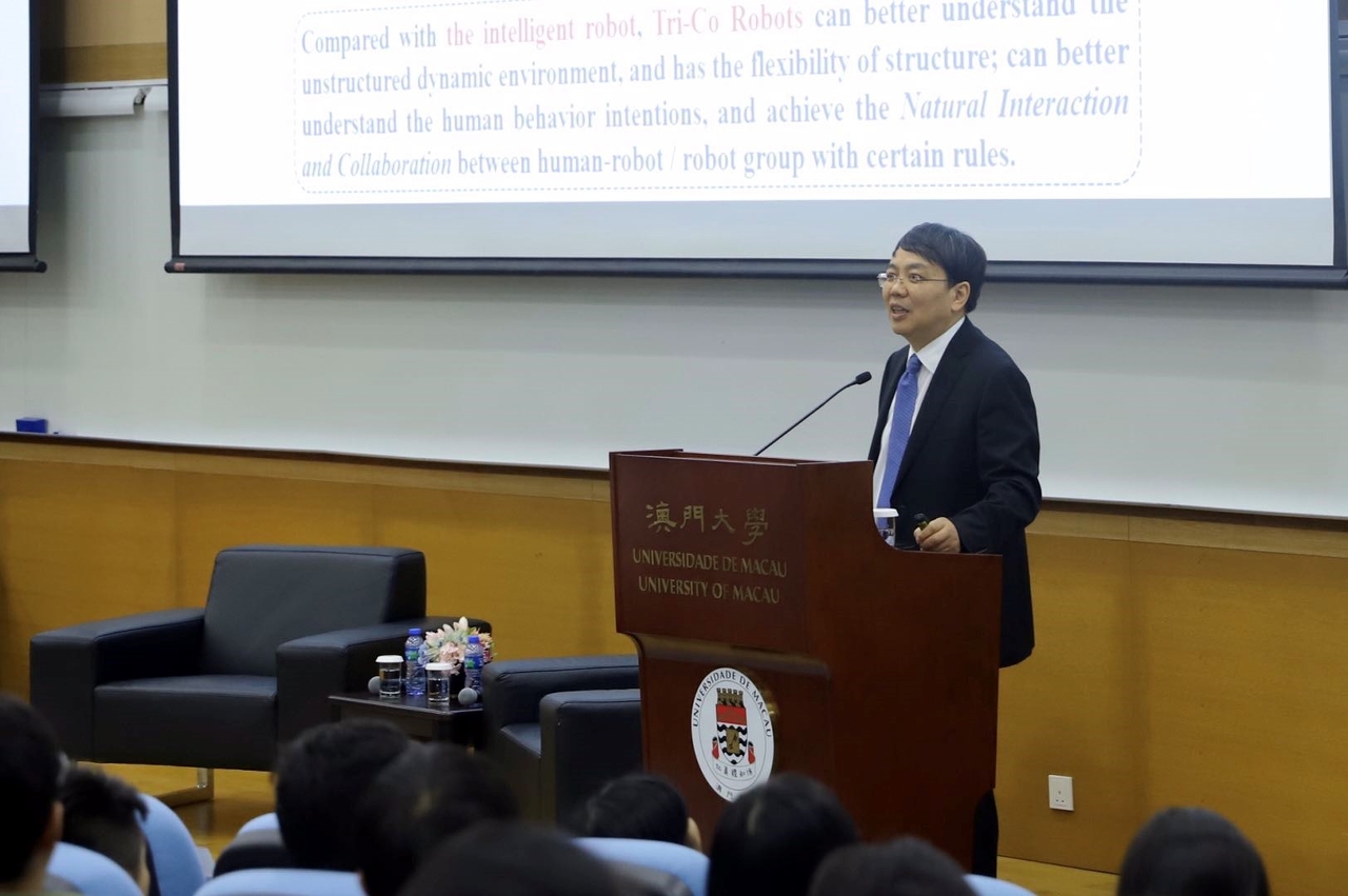 澳門大學今(8)日舉行“大學講壇"講座,由機械電子工程專家丁漢以“機器人的未來:共融機器人”為題發表演說,介紹機器人技術的最新發展狀況,以及機器人的加工系統、數據引擎與其發展趨勢。