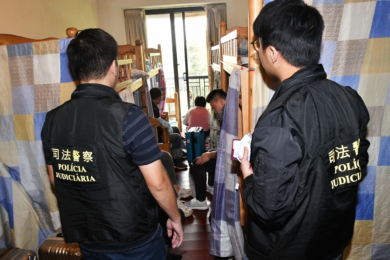 於11月11日下午2時至晚上9時,司警局派出16名刑事偵查人員前往氹仔區針對懷疑非法旅館進行巡查,並在一個用作非法旅館的單位內合共查獲10名(7男3女)內地居民住客,經調查及完成身份認別程序後,發現其中4名男子涉及從事非法兌換外幣(俗稱“換錢黨”)活動,故將該4名男子移送治安警察局出入境管制廳處理。其餘人士經調查無可疑後准予離開,而相關住宅單位已被旅遊局查封。