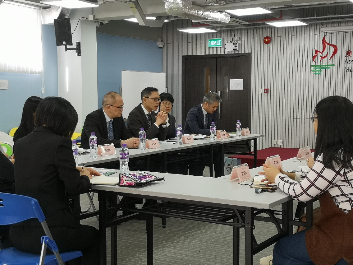 11月22日上午,司警局局長薛仲明、副局長杜淑森及陳堅雄,以及社區警務及公共關係處處長鄭寶湘等一行人,分別與澳門中華學生聯合總會理事長戴嘉萍、秘書長林翠倩,澳門中華新青年協會理事長楊文遠、副會長劉佐春,以及兩個團體代表進行座談交流。兩場座談會上,薛仲明局長向與會代表介紹了最新治安情況、與青年相關的罪案資訊,同時聽取他們對警方執法和防罪宣傳教育工作的意見。