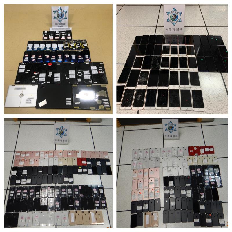 澳門海關近日分別於氹仔客運碼頭及外港碼頭查獲四宗旅客違規帶入電子產品個案,檢獲智能電話、平板電腦及手提電腦共323部,海關依法作出起訴。