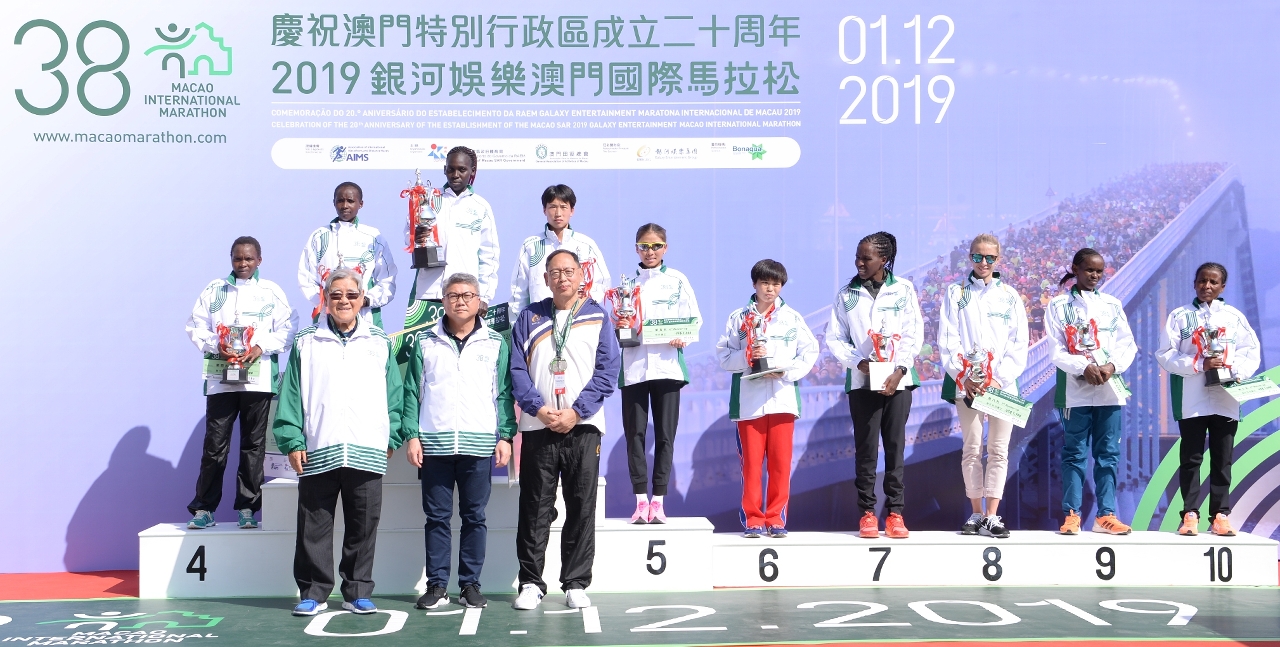 由體育局及澳門田徑總會主辦,銀河娛樂集團冠名贊助的「慶祝澳門特別行政區成立二十周年 – 2019銀河娛樂澳門國際馬拉松」今日(1日)於奧林匹克體育中心運動場舉行,賽事吸引52個國家地區共12,000名運動員角逐,由社會文化司司長譚俊榮等主持起步禮。矚目的馬拉松男、女子全場組別最終分別由埃塞俄比亞的阿比比與肯尼亞的謝妮育奪冠。而陳楷元與許朗則贏得馬拉松澳門運動員男、女子組的桂冠。