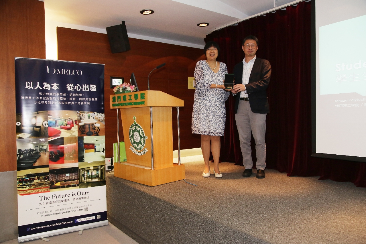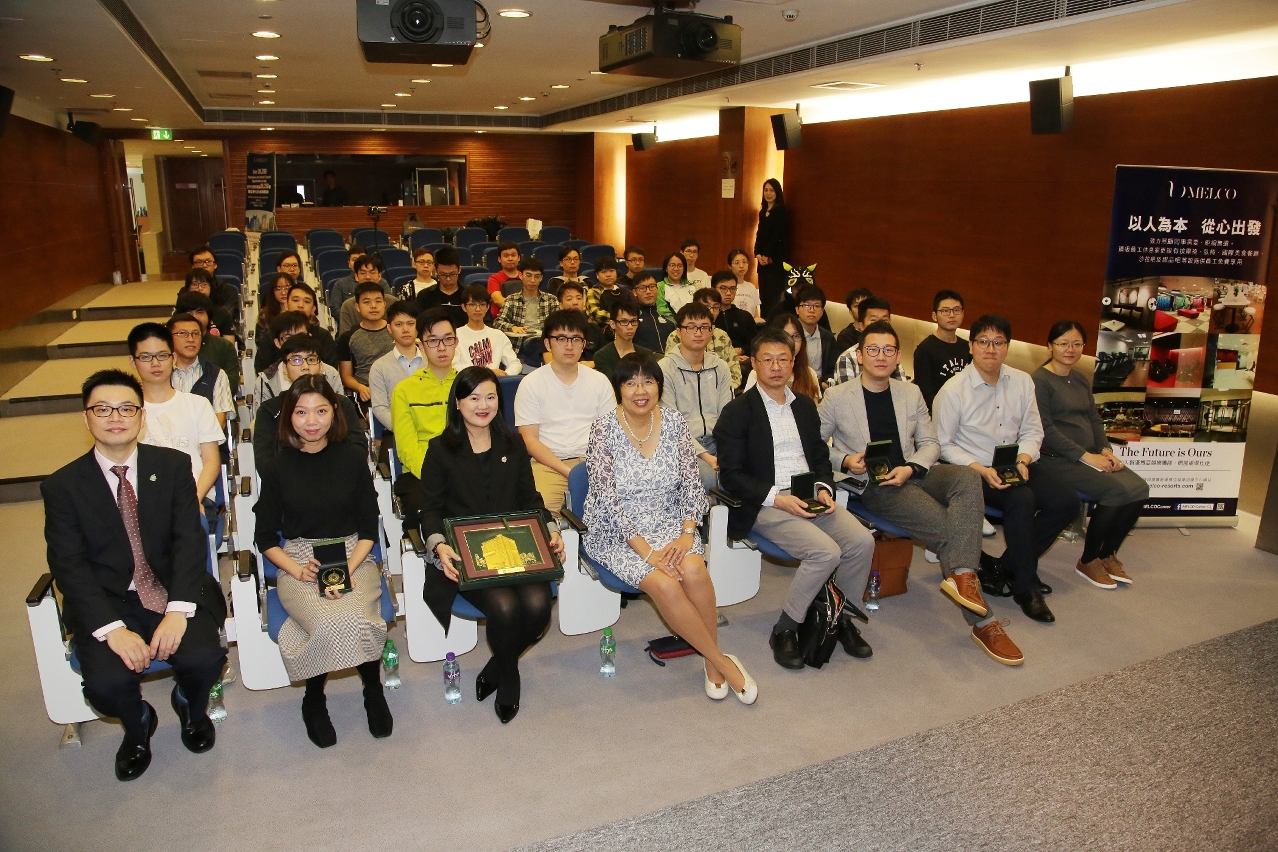 新濠博亞是全球規模最大的綜合度假村營運商之一,在世界多地擁有娛樂場博彩及娛樂度假村業務,行業經驗豐富,積極履行社會責任,貢獻社會,回饋社會。是次講座關注學生職業生涯及成長,內容全面,有豐富產品設計經驗的Coin Qian為學生們破解如何應用書本上的知識於工作上,學以致用,由設計、測試到維護等工作流程逐一講解,讓學生對行業有一定認識;應用開發經理Max Wong為澳門理工電腦學課程的校友,他分享了學習成長歷程,所經歷過的起起跌跌,工作的苦與樂,勉勵同學們要不斷學習,自我增值,勇敢面對挑戰;最後由全球IT運營副總裁Norman Liang為學生們介紹了國際級大公司的資訊科技架構及部門,使他們對自身將來發展的路有初步理解,為他們提供了寶貴的參考指引,讓學生更好的裝備自己,提升競爭力。