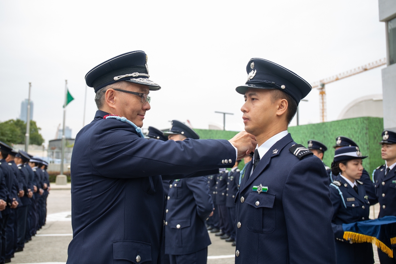 就職儀式在媽閣海關總部舉行,由黄有力關長主持,海關領導及主管人員出席。各晉升人員首先進行宣誓,再由黃有力關長、黃文忠副關長、周見靄助理關長及黃偉文助理關長為各人戴上新職位肩章,正式晉升為首席關員。儀式上亦向在晉升培訓課程中總成績排名第一之學員頒發獎項。