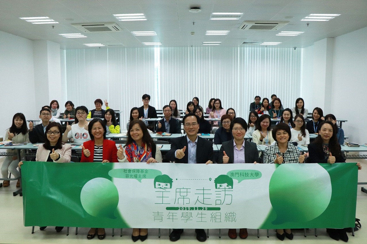 為加深青年人對特區社保政策的認識,社會保障基金行政管理委員會主席容光耀日前走訪科技大學,以“雙層社保,與你同行每一步”為主題介紹社保制度和非強制央積金等養老保障政策,並與在座師生分享和交流理財之道。