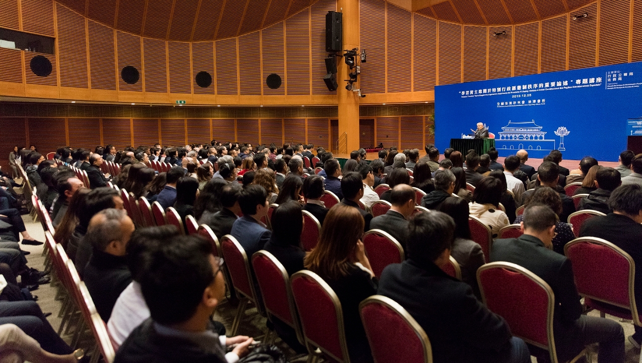 為慶祝中華人民共和國成立七十週年及澳門特別行政區成立二十週年,並加強特區政府公務人員對《中華人民共和國憲法》及《澳門特別行政區基本法》的了解,更深入認識澳門特別行政區的憲制性法律制度。行政公職局與法務局合辦主題為“學習習主席關於特別行政區憲制秩序的重要論述”專題講座,並邀請全國港澳研究會會長徐澤擔任主講嘉賓。講座於12月5日在澳門科學館會議中心舉行,行政公職局局長高炳坤、法務局局長劉德學、各政府部門的領導、主管及其他公務人員超過230人出席。