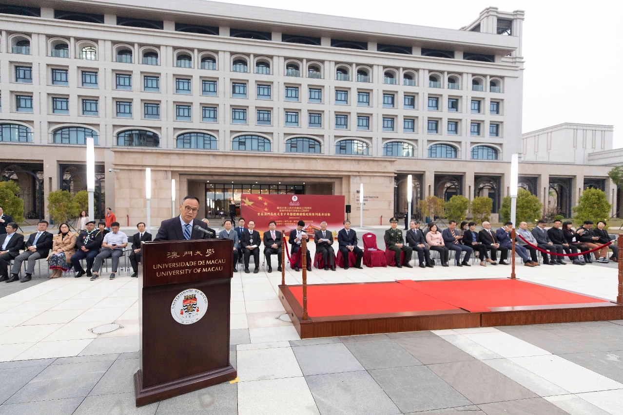 宋永華致辭時表示,此次隊列展示活動是澳門學界獻給祖國成立70周年、澳門特區成立20周年的一份特殊禮物。澳大非常重視國旗儀仗隊的建設,並將其與推廣國旗文化、實施國情教育緊密結合在一起。他表示澳門與國家的命運緊緊相連。回歸以來,澳大在中央政府和特區政府的支持下,建設了新的校園,構建了獨具特色的人才培養體系,培育了一大批愛國愛澳人才。隨著《粵港澳大灣區發展規劃綱要》出台,澳門要建設成為“一中心、一平台、一基地”,為澳門的高等教育領域帶來了更多新機遇和發展空間。澳大將全力配合國家和特區政府“教育興澳、人才建澳”的發展策略和教育方針,讓學生更深入了解祖國,了解中華文明,為國家發展和澳門社會的進步培養更多具有家國情懷、社會責任感和國際競爭力的人才。