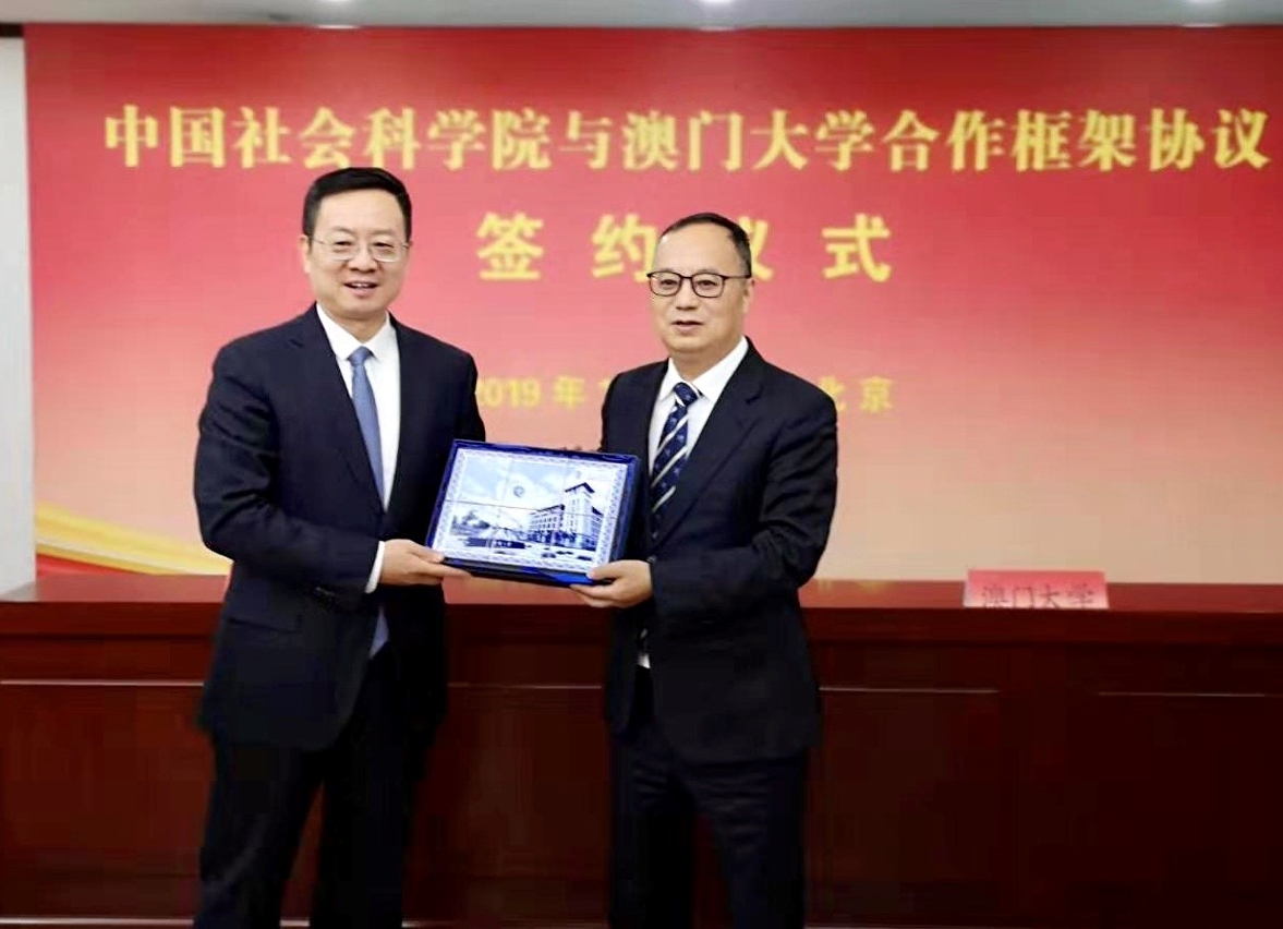 澳大校長宋永華率代表團前往中國社會科學院交流訪問,獲社科院副院長高翔熱情接待。宋永華與高翔簽署《澳門大學和中國社會科學院合作框架協議》,進一步深化落實雙方合作,共同為粵港澳大灣區的高等教育和研究發展注入新動力,助力粵港澳大灣區建設取得新成就。雙方同意在人才培養,高端智庫研究,澳門地方誌編纂修訂和科技人文跨領域研究等方面進行深入合作,並建立相關聯合研究機構。