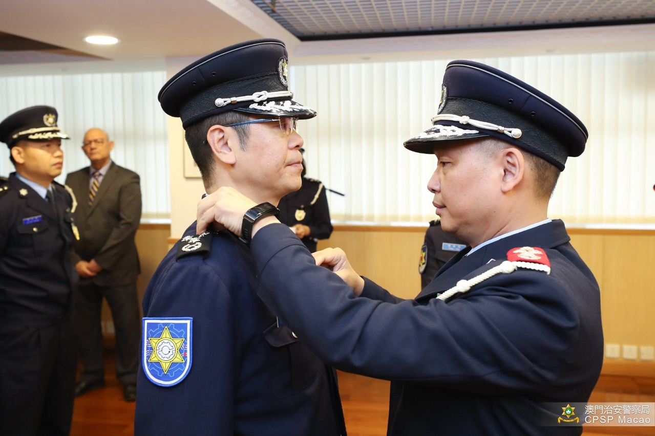 吳錦華局長在儀式上祝賀獲晉升的警官,並勉勵他們要牢記使命,守護澳門,服務市民,繼續在崗位上發揮才能,以豐富的工作經驗及專業知識,推動治安警察局繼續向前發展,為澳門繼續成為最安全城市之一而共同努力。