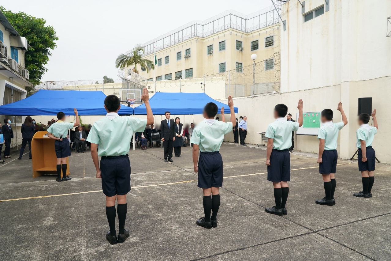 本年度宣誓儀式上,懲教管理局程况明局長勉勵一眾院生凡事豫則立,不豫則廢,做任何事情都必須有周詳的計劃及做足準備,不斷向目標進發。同時,亦要善用和珍惜各種學習機會,時刻反省和改善自身,虛心接納工作人員循循善誘的教誨,聽從父母、師長的真誠勸勉,時刻遵紀守法,成為一個成熟、有擔當、具有責任感的青年人。隨後,程况明局長由少年感化院余珮琳院長陪同進行監誓,院生在一眾嘉賓、感化院輔導員以及家長們的見證下,承諾以堅持不懈、鍥而不捨的精神,努力達成許下的目標。儀式結束後,院生向嘉賓及家人獻唱《友共情》及《真的愛你》兩首歌曲,透過溫馨動人的歌聲,答謝大家對他們的關愛和支持。