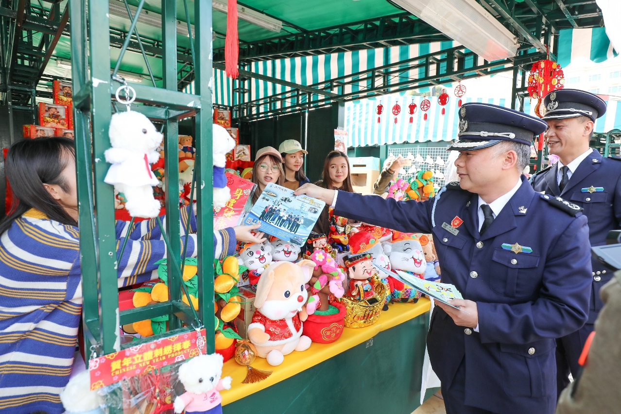 農曆新年將至,預計來澳度歲旅客將會上升,為維護本澳國際旅遊城市的形象,保障消費者權益,海關聯同多個部門持續到各區巡查及宣傳,打擊售賣侵權貨品活動,以維護市場秩序。