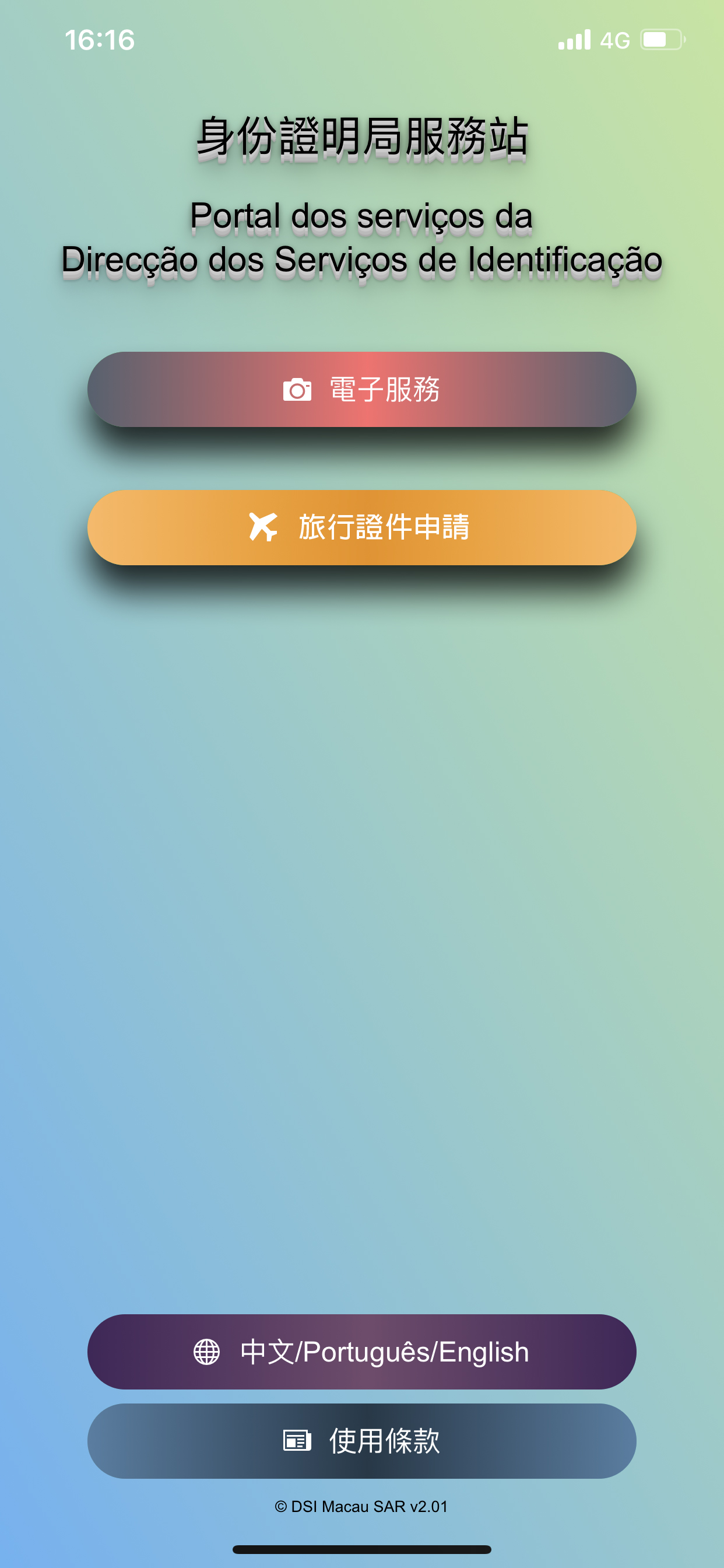 為配合電子政務的發展,身份證明局積極推動網上申請服務,繼網上辦理《刑事紀錄證明書》、《個人資料證明書》和《社團及財團證明書》後,拓展至通過移動裝置辦理特區旅行證件及往港旅遊證。有關服務自2019年12月26日起試用至今運作暢順,自即日(23日)起,正式推出供市民使用。合資格人士只要透過《身份證明局服務站》移動應用程式,以“澳門公共服務一戶通”帳戶登入系統,便可隨時隨地為其本人或其年滿5歲的未成年子女或被監護人辦理《澳門特別行政區護照》、《澳門特別行政區旅行證》及《澳門居民往來香港特別行政區旅遊證》,進一步解決市民在非辦公時間辦理證件的需要。