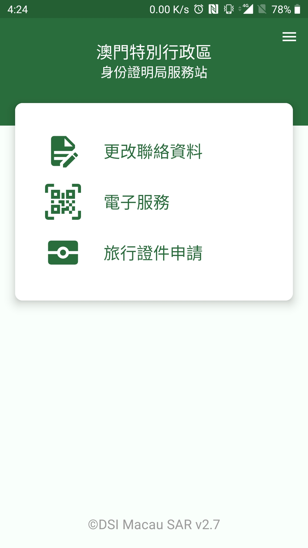 《身份證明局服務站》移動應用程式適用於Android(4.0或以上版本)或iOS(11.0或以上版本)系統,用戶可在Google Play或App Store輸入中文「身份證明局服務站」、葡文「Portal de Serviços da DSI」或英文「DSI Service Station」、掃瞄QR Code(見附圖)或透過身份證明局網頁(www.dsi.gov.mo/mobileapp_c.jsp)免費下載該應用程式。