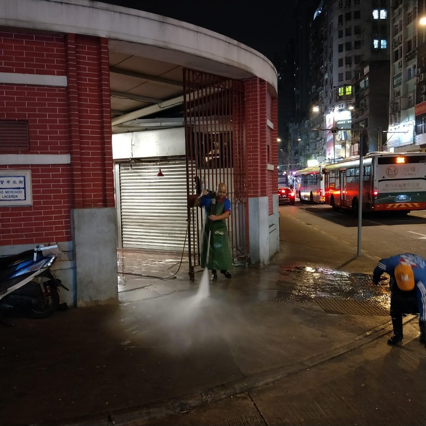為配合新型冠狀病毒的防控工作,市政署加強小販區、街市及澳門批發市場的清潔及消毒工作,以保障市民及商販在使用相關設施時的安全和衛生。