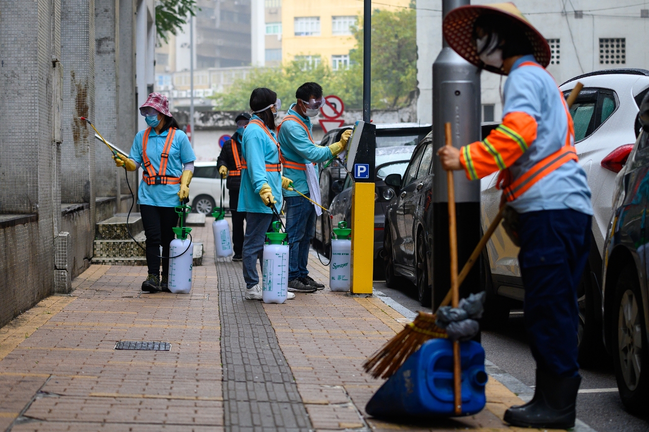 為積極配合本澳整體的防疫工作,市政署協調清潔專營公司加大在本澳各區清洗街道,以及加強對公共設施的清潔消毒,盡量降低病毒傳播的風險及條件,保障公眾使用公共設施時的衛生安全。