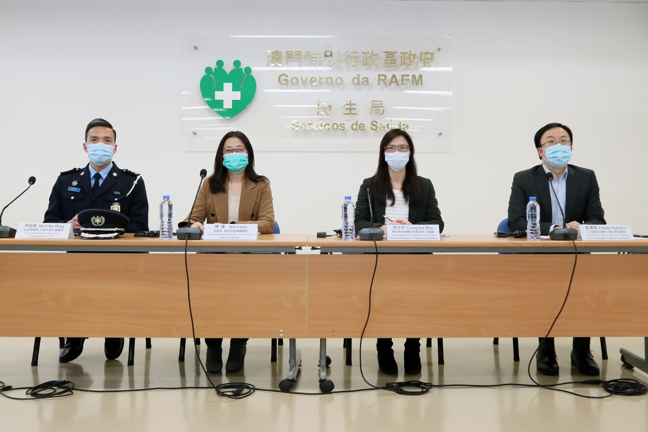 新型冠狀病毒感染應變協調中心(下稱應變協調中心)於今(24)日舉行例行記者會,旅遊局執照及監察廳陳露廳長、治安警察局行動及通訊處馬超雄處長、疾病預防控制中心傳染病協調員梁亦好醫生、仁伯爵綜合醫院急診部協調員曾潭飛醫生共同會見傳媒。