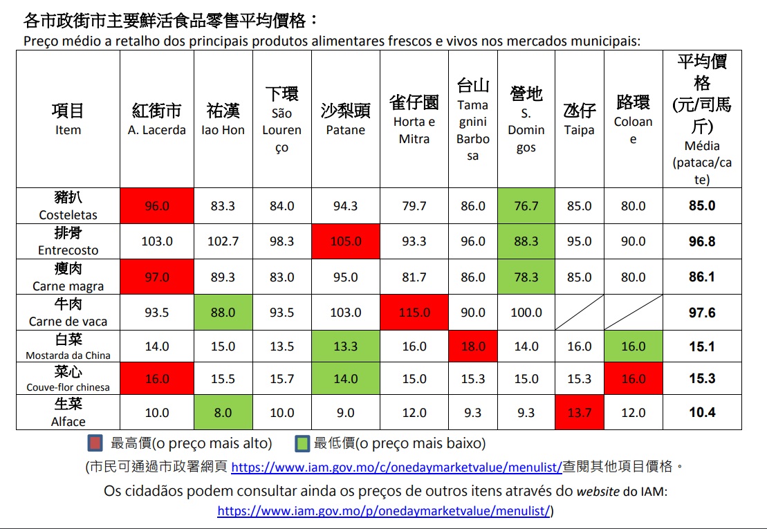 (市民可通過市政署網頁https://www.iam.gov.mo/c/onedaymarketvalue/menulist/查閱其他項目價格。)