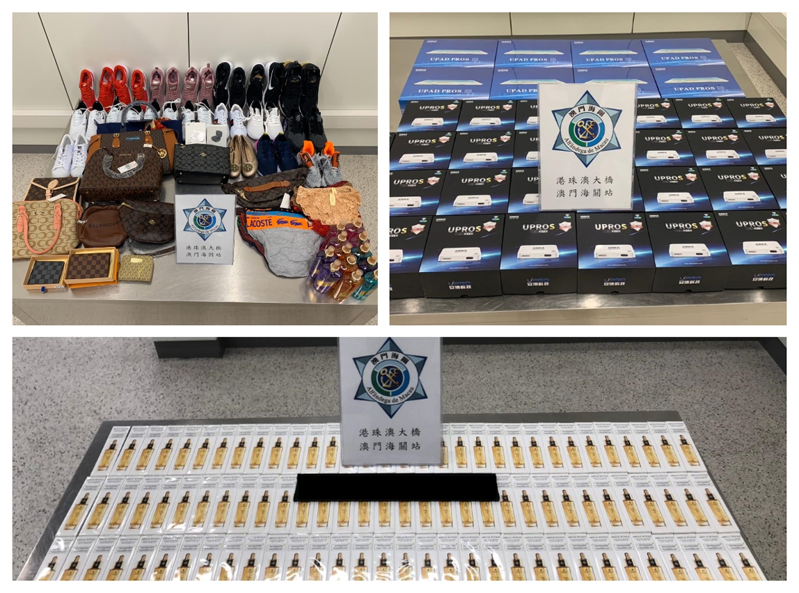 抗疫期間,海關持續加強各口岸的打擊違法活動力度,連日來港珠澳大橋澳門海關站查獲6宗違法案件,緝獲涉及平板電腦、多媒體機項盒、手袋、皮包、護膚品及化妝品等物品共1007件,估計物品總值約43萬澳門元,海關已依法對涉案人士作出起訴。