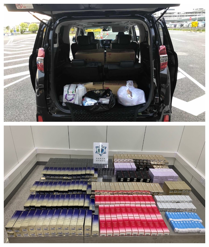 海關透過恆常及突擊檢查行動,利用「風險管理系統」及各類關檢設備,分別在入境車道及旅客檢查區查獲多宗違法案件。於2月28日,港珠澳大橋澳門海關站海關人員根據「風險管理系統」預警分析,對1輛從香港入境的港澳兩地牌車輛進行檢查,於車箱內合共查獲519件護膚品及化妝品。另於本月2及3日,海關人員透過X光機檢查入境本澳旅客期間,先後發現5名入境人士的行李箱內藏可疑物品,經詳細檢查,查獲平板電腦、多媒體機頂盒、修護複原蜜、手袋、皮包、耳機及波鞋等合共488件物品。