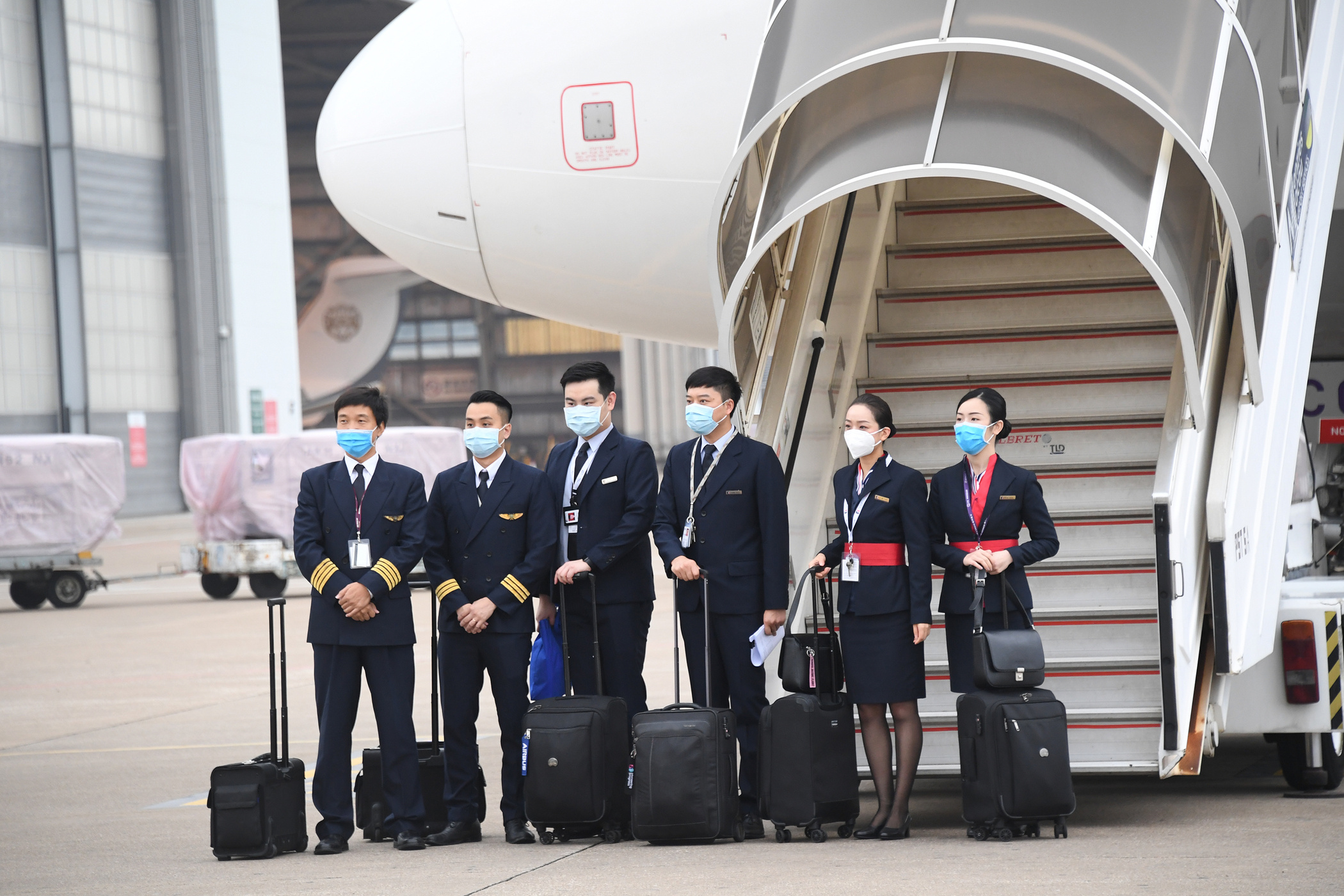 澳門航空的7名機組人員於上午約8時30分登機,先為航行作準備;其後於9時10分左右,穿上衛生局工作服的醫護人員及旅遊局人員一同登機,前往武漢接載滯留湖北的澳門居民。