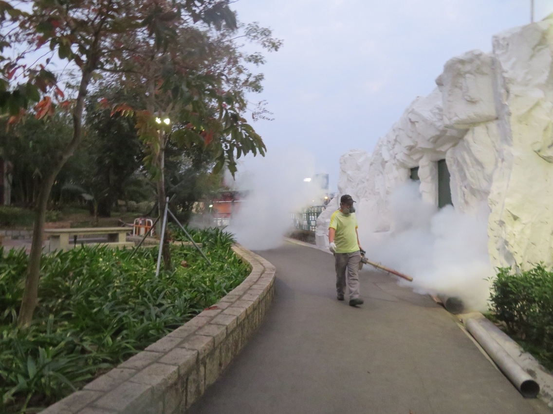 市政署於三月至十一月期間,安排人員於早上六時至九時及黃昏五時至八時在轄下公園、休憩區、小販區、街市及墳場等超過一百七十個地點開展定期滅蚊工作,包括噴灑除害劑殺滅成蚊,以及在一些容易積水的地方如溝渠及集雨水井投放蚊砂預防蚊子孳生,以有效殺滅成蚊及其幼蟲。同時,市政署與衛生局保持緊密的聯繫,會因應本澳誘蚊產卵指數的趨勢而調整滅蚊頻次,做好蚊患預防工作。