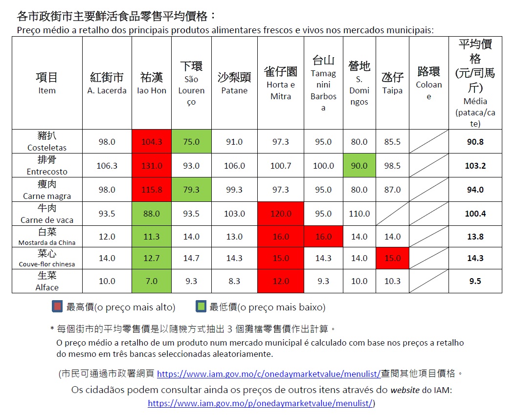 (市民可通過市政署網頁https://www.iam.gov.mo/c/onedaymarketvalue/menulist/查閱其他項目價格。)