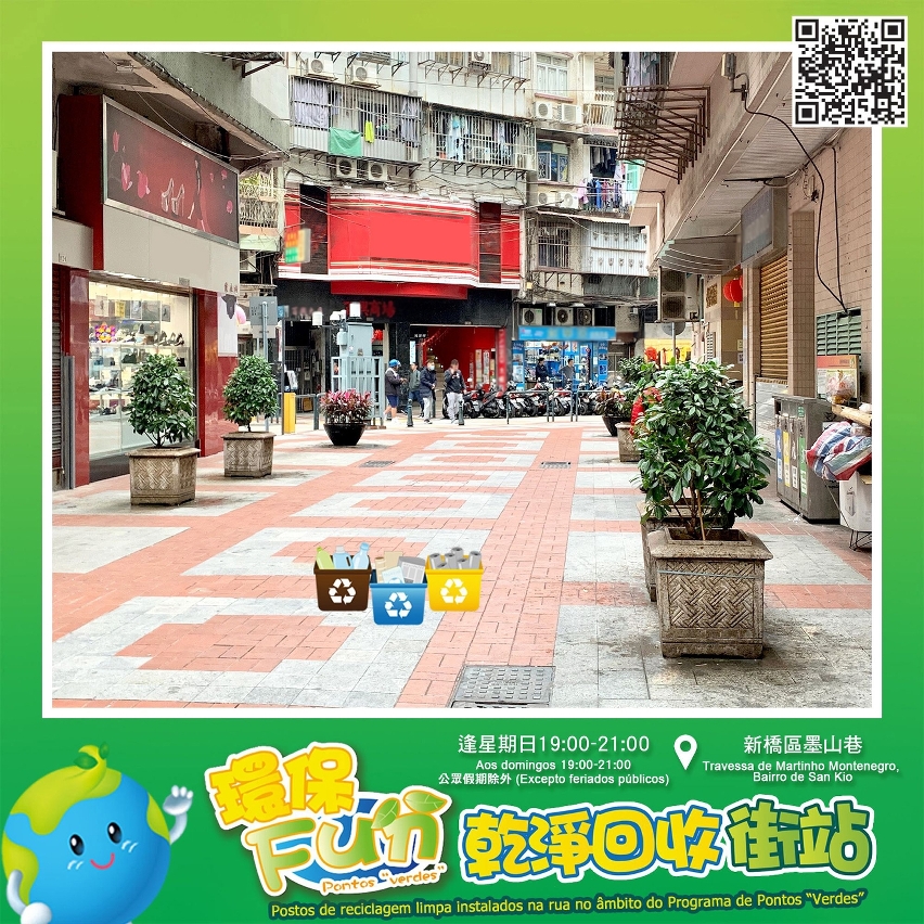 為響應每年4月22日的“世界地球日”,宣揚環境保護的訊息,進一步推動市民實踐分類回收,環境保護局在現有19個“環保Fun”回收點的基礎上再作優化,與環保團體合作,由本月15日起將陸續在皇朝宋玉生公園、南灣友誼廣場以及新橋區墨山巷(渡船街大豐銀行斜對面)設置“環保Fun乾淨回收街站”,並增設晚間或周日的回收時段,以便“上班族”和市民於下班後或假日實踐乾淨回收(詳細內容請見附圖)。