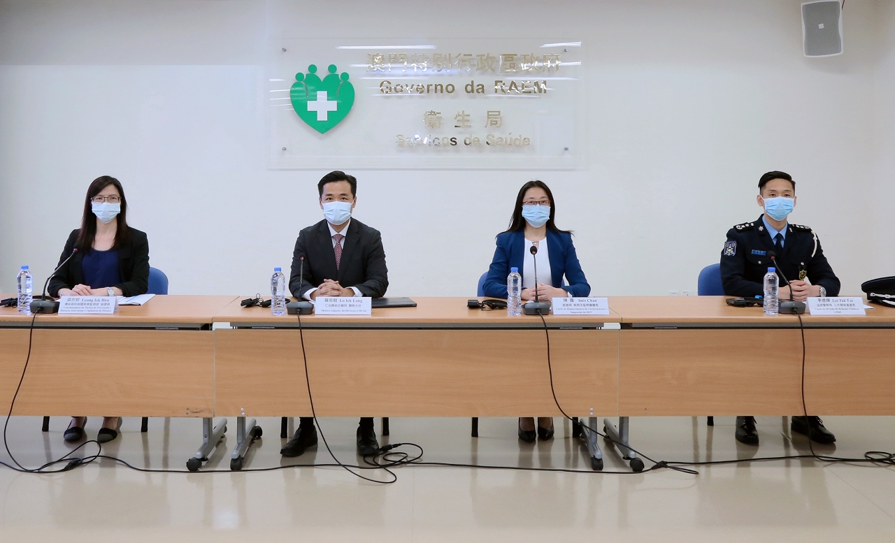 新型冠狀病毒感染應變協調中心(下稱應變協調中心)於今(12)日舉行例行記者會,仁伯爵綜合醫院羅奕龍醫務主任、旅遊局執照及監察廳陳露廳長、治安警察局公共關係處李德輝處長、疾病預防控制中心傳染病防制暨疾病監測部梁亦好協調員共同會見傳媒。