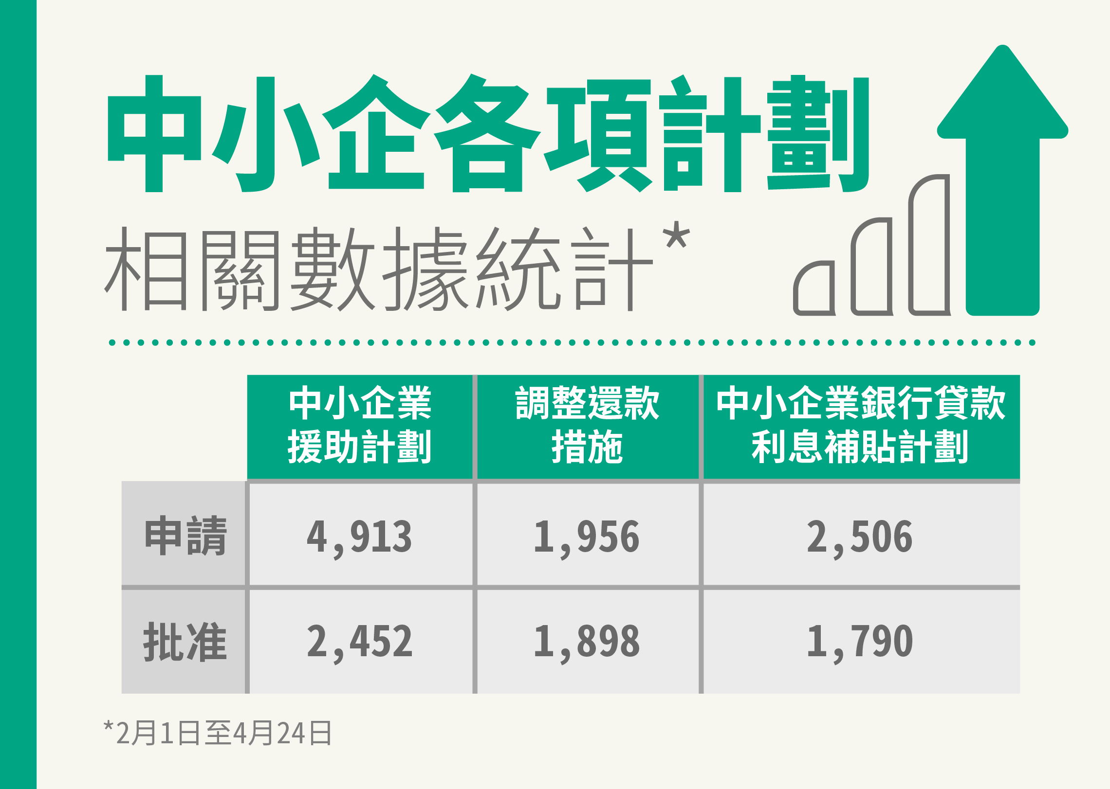 至4月24日,利息補貼計劃已接收2,506宗申請,已批准 1,790宗。