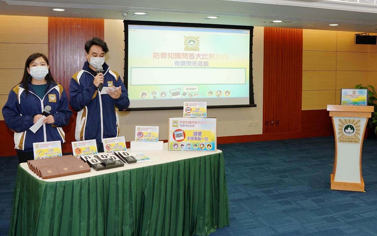 司法警察局舉辦的“防罪知識問答大比拼2019”有獎問答活動已於2020年2月11日結束,並於 3月舉行了抽獎儀式,頒獎儀式因受新型冠狀病毒肺炎疫情影響而延至日前進行。是次活動主要對象為就讀本澳中學及大專院校的學生,旨在深化青少年的防罪守法意識,提升他們對各類犯罪的警覺性和防罪能力。