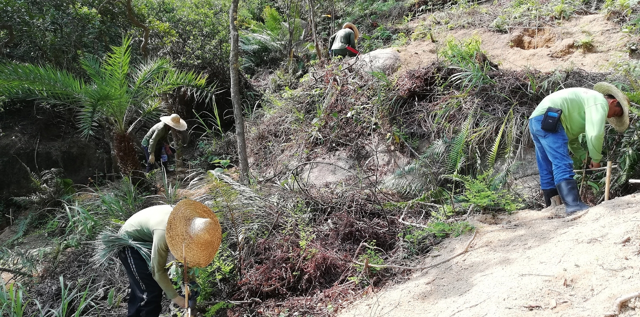 各項山林清疏、開挖樹穴及施肥等前期工作已於三月完成,並已逐步開展種植工作,期望樹苗盡快適應山林多變的自然環境,打造具高生態效益和特色景觀的生態廊道。