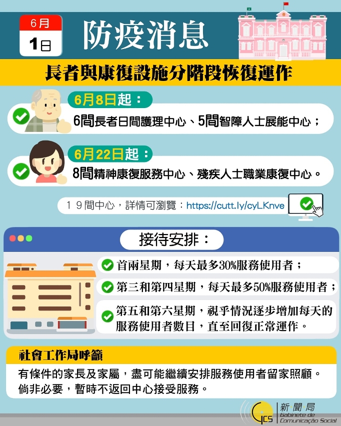本澳連續54日無新增確診病例 部分長者和康復服務設施將分類別、分階段和有限度恢復運作