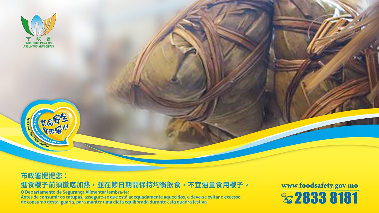 由於糉子的熱量和脂肪含量都偏高,市民應保持均衡飲食,不宜過量食用。有關本年度端午節糉子整體檢測結果的詳情,可瀏覽食品安全資訊網 www.foodsafety.gov.mo。